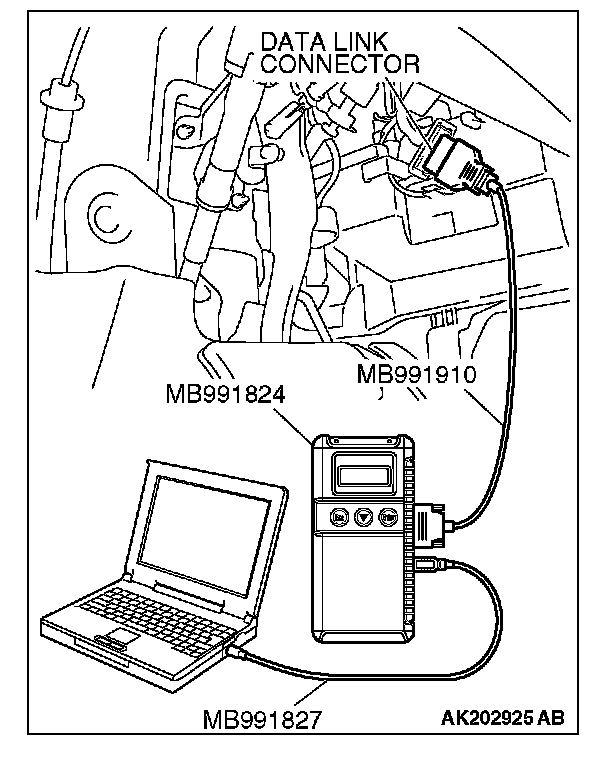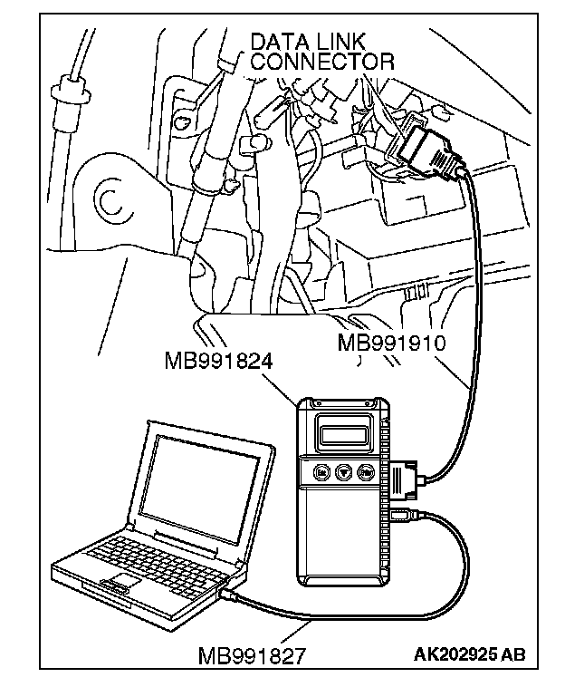 1. Connect scan tool MB991958 to the data link connector.