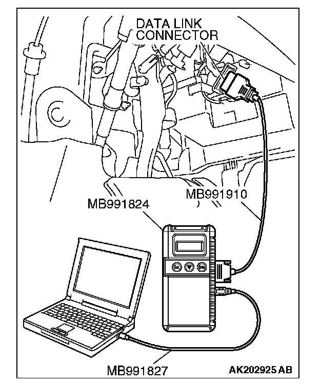 1. Connect scan tool MB991958 to the data link connector.