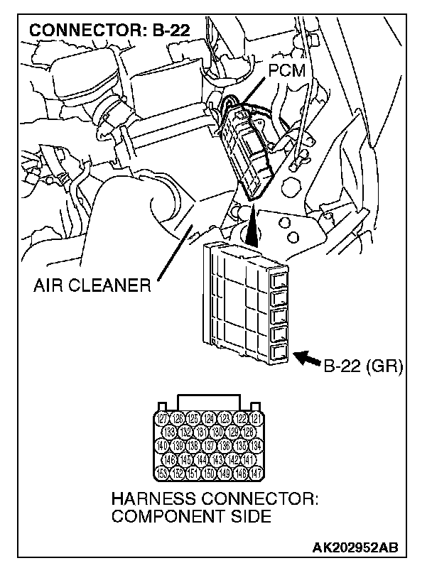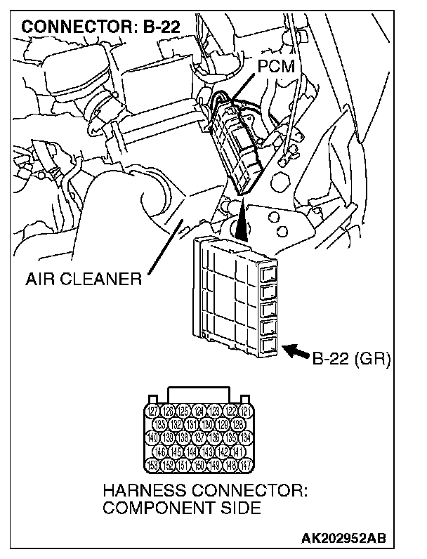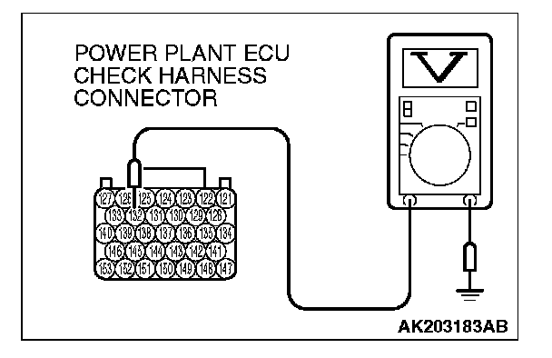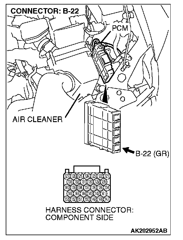 STEP 1. Measure the voltage at PCM connector B-22 by using check harness special tool MB991923.