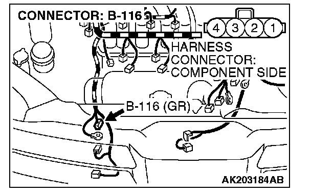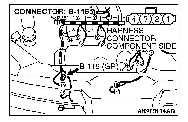 STEP 2. Check harness connector B-22 at PCM connector and harness connector B-116 at generator connector for damage.