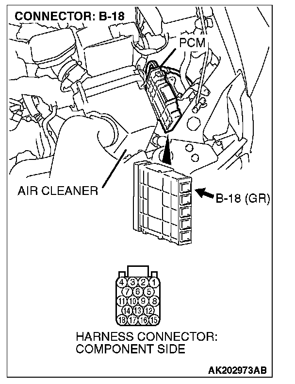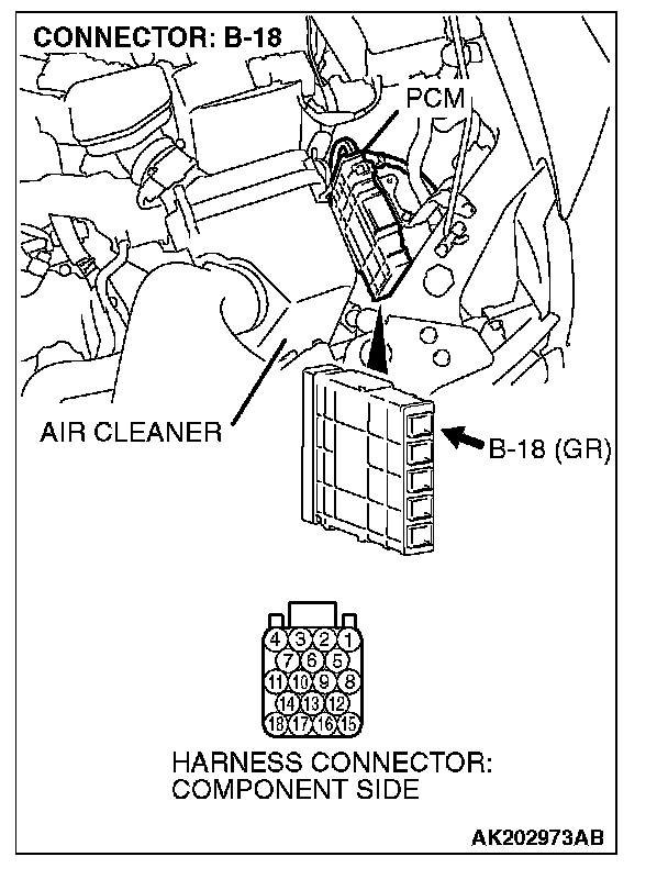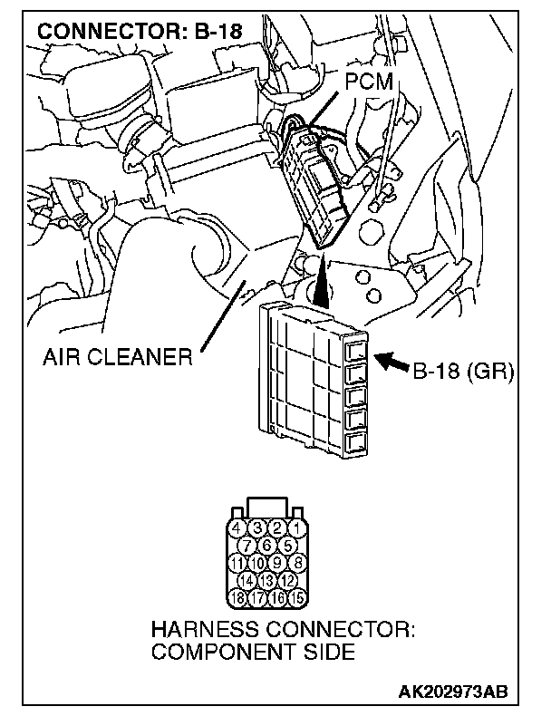 STEP 1. Check harness connector B-18 at PCM for damage.