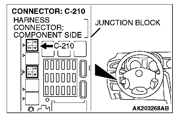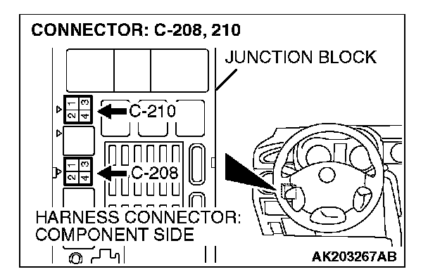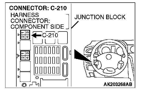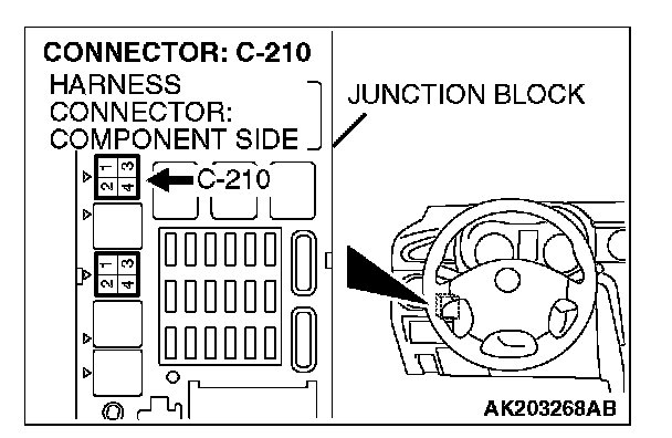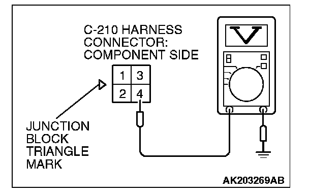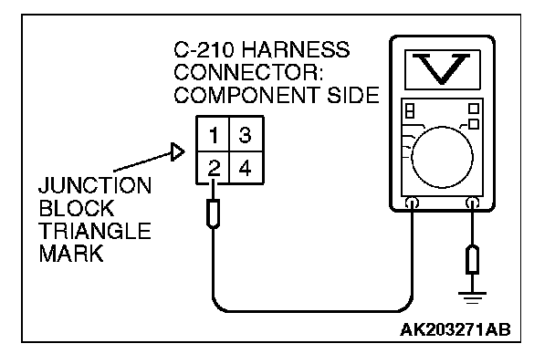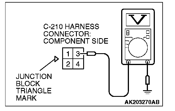STEP 4. Measure the power supply voltage at fuel pump relay 1 harness side connector C-210.