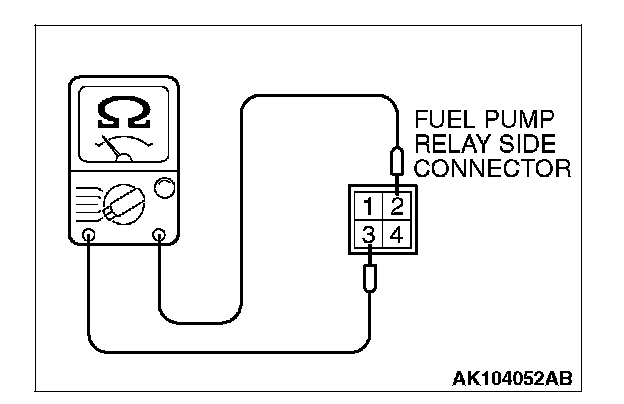 2. Check for continuity between the each fuel pump relay terminals No. 2 and No. 3.