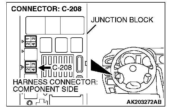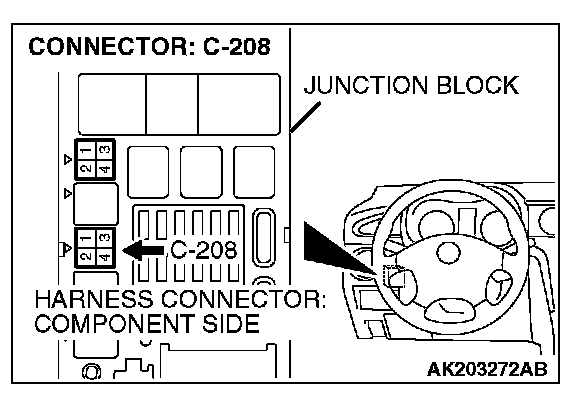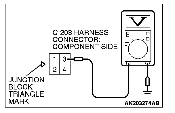 STEP 7. Measure the power supply voltage at fuel pump relay 2 harness side connector C-208.
