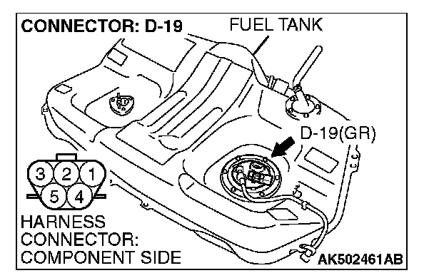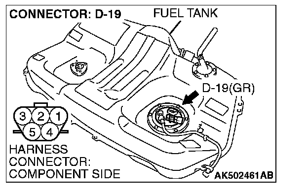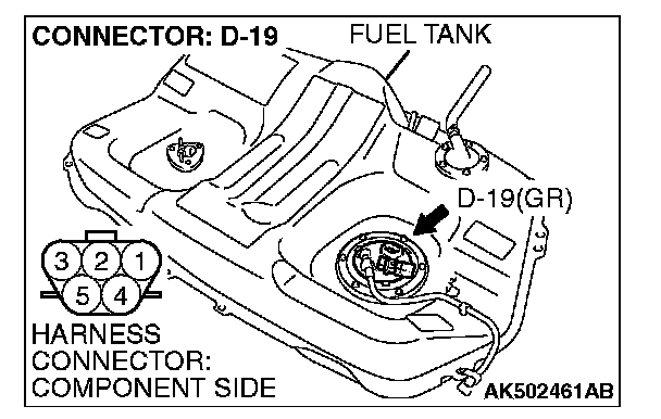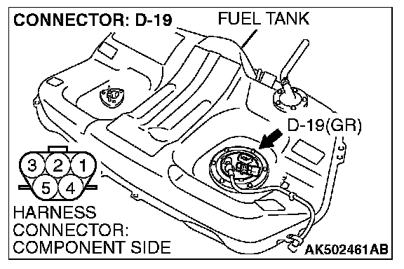 STEP 9. Check harness connector D-19 at fuel pump for damage.