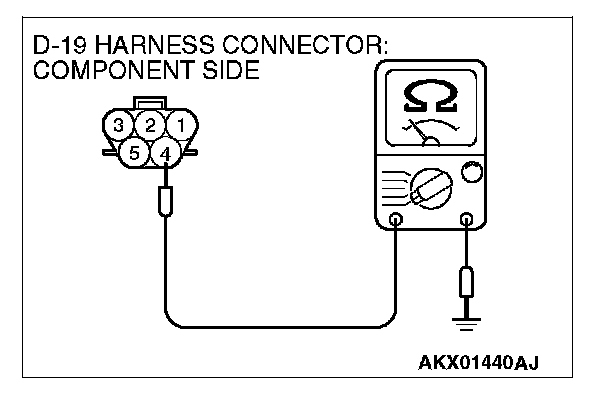 STEP 11. Check for continuity at fuel pump harness side connector D-19.