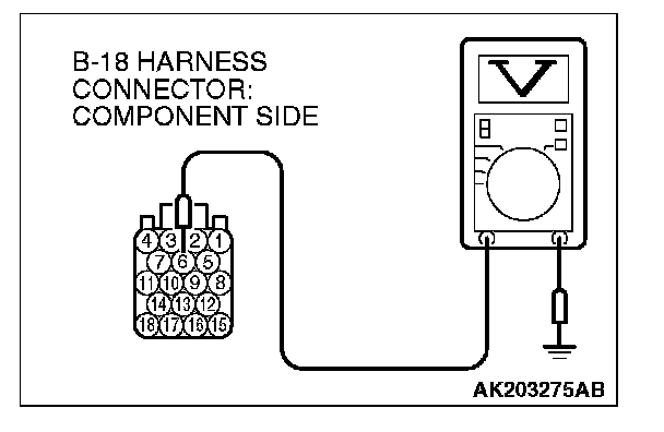 STEP 14. Measure the power supply voltage at PCM connector B-18.
