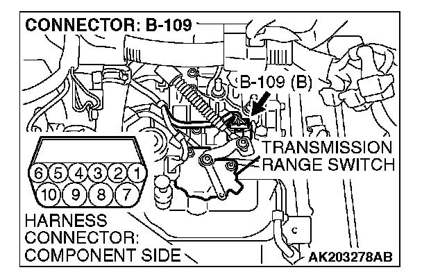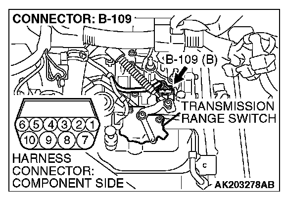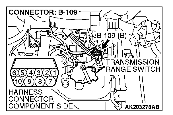 STEP 1. Check harness connector B-109 at transmission range switch for damage.