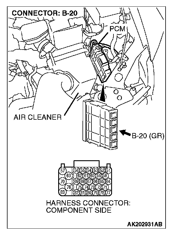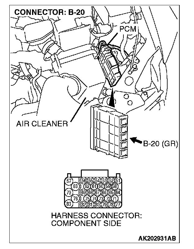 STEP 4. Check harness connector B-20 at PCM for damage.
