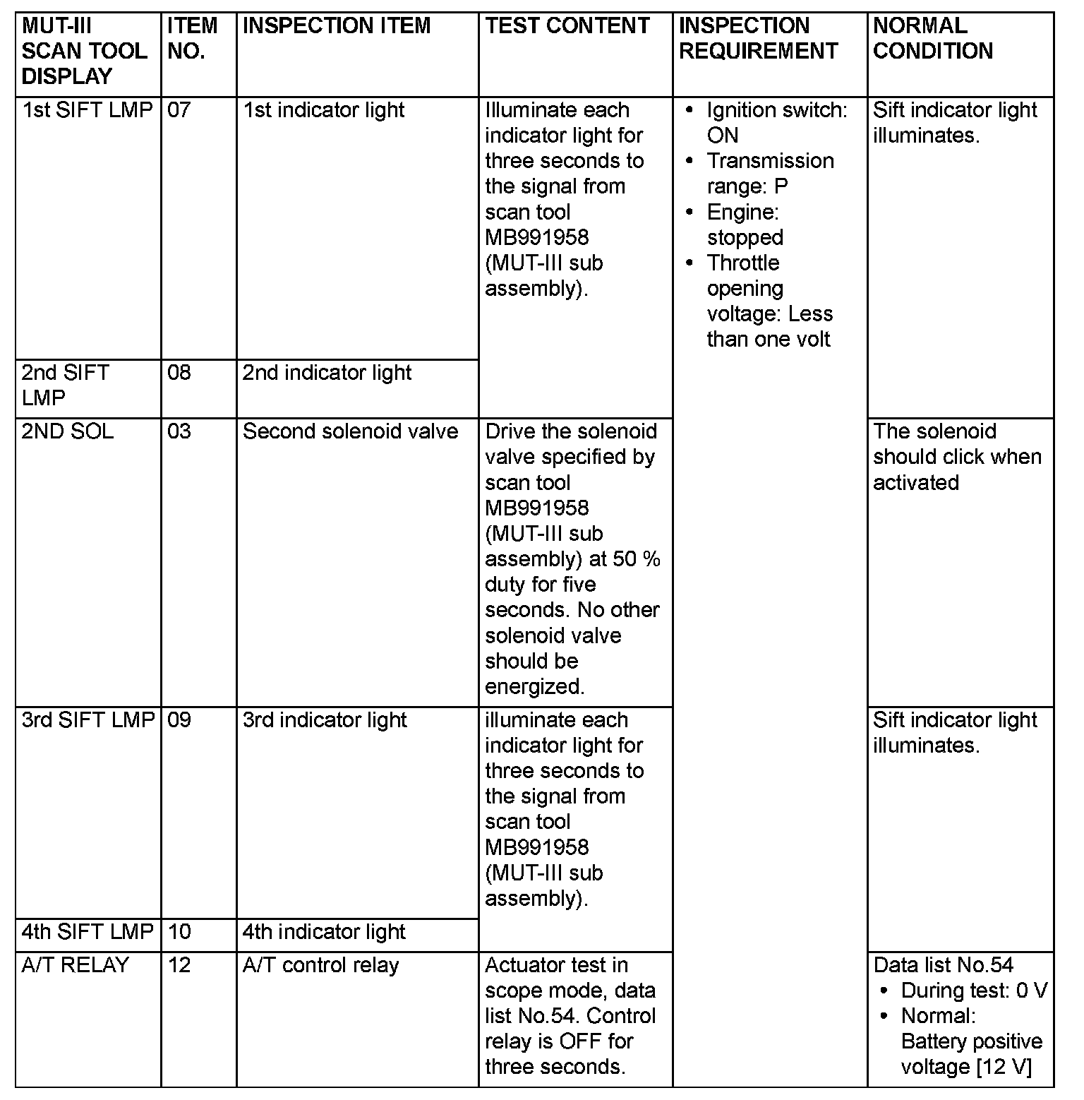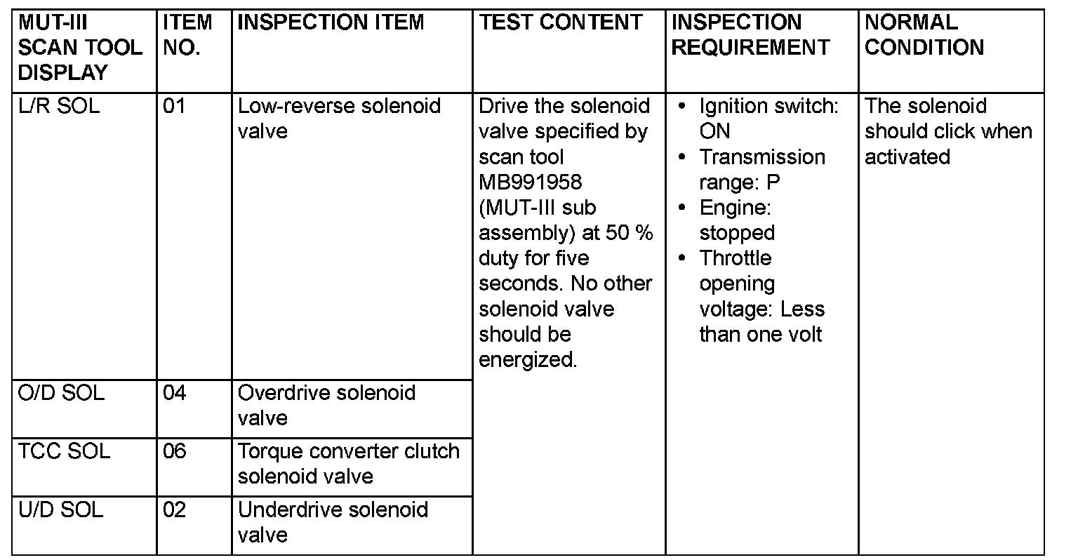 Actuator Test Reference Table