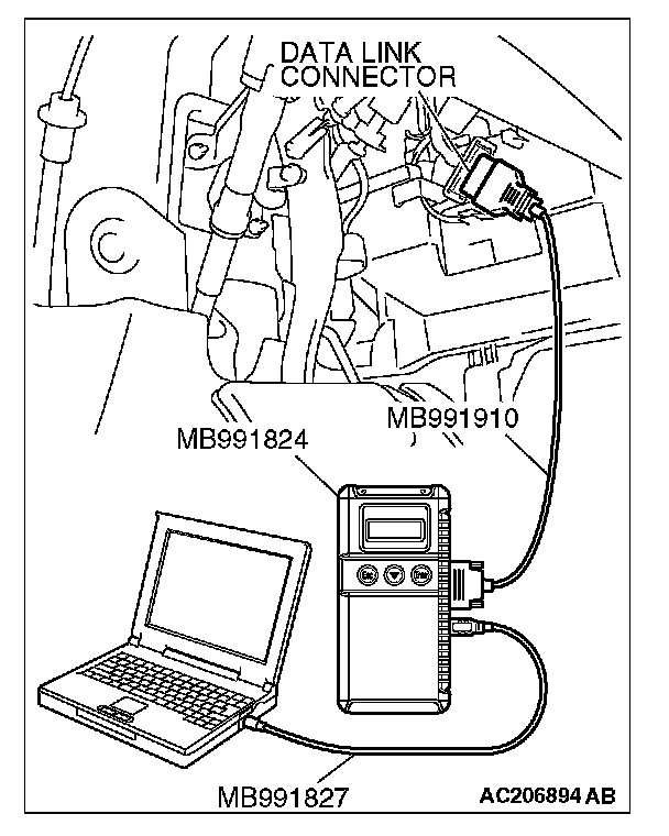 1. Connect scan tool MB991958 to the data link connector.
