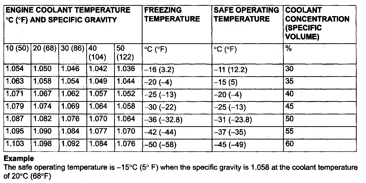 - If the concentration of the coolant is below 30%, the anti-corrosion property will be adversely affected. In addition, if the concentration is above 60%, both the anti-freeze and engine cooling properties will decrease, affecting the engine adversely. For these reasons, be sure to maintain the concentration level within the specified range.