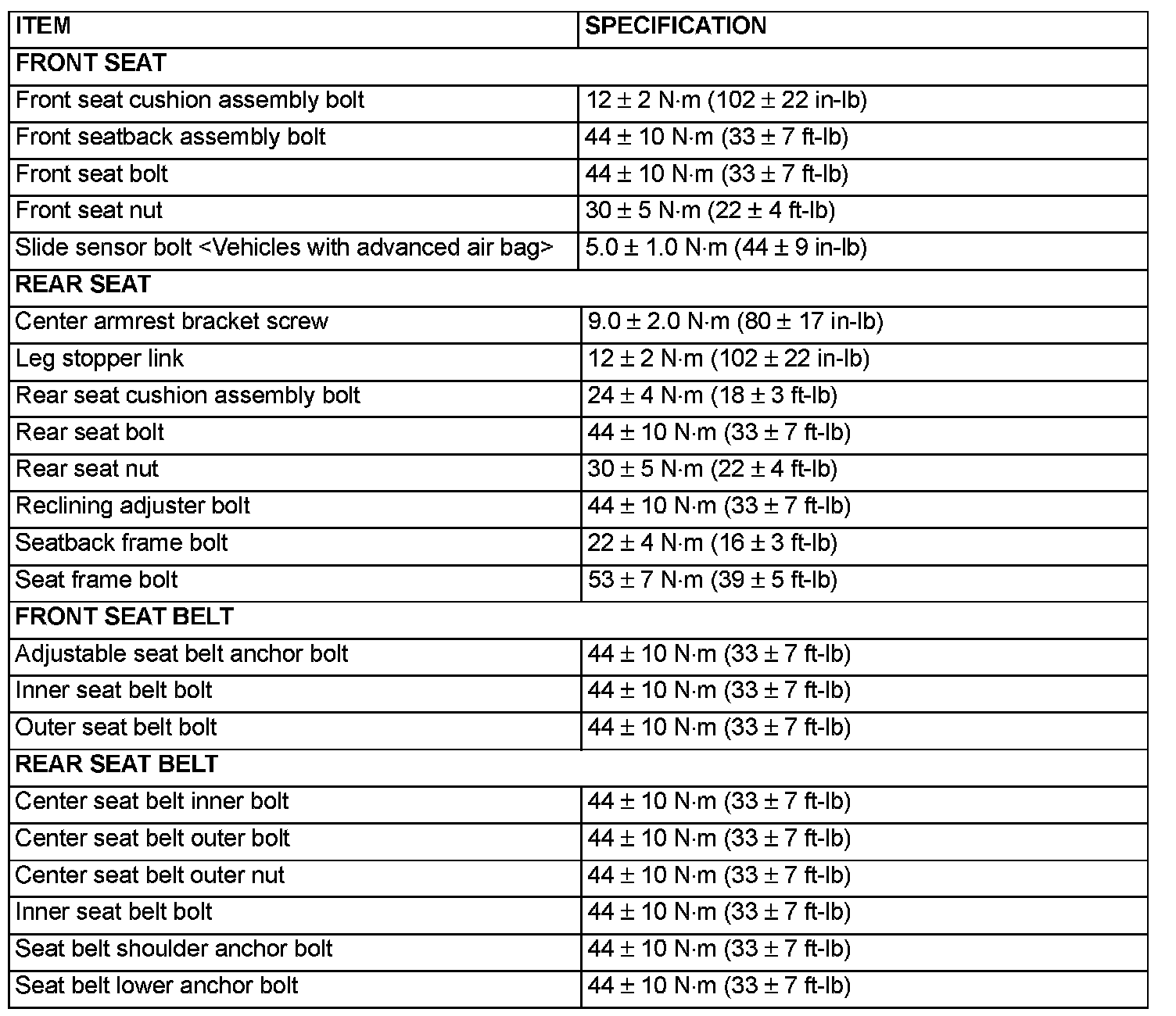 Fastener Tightening Specification: