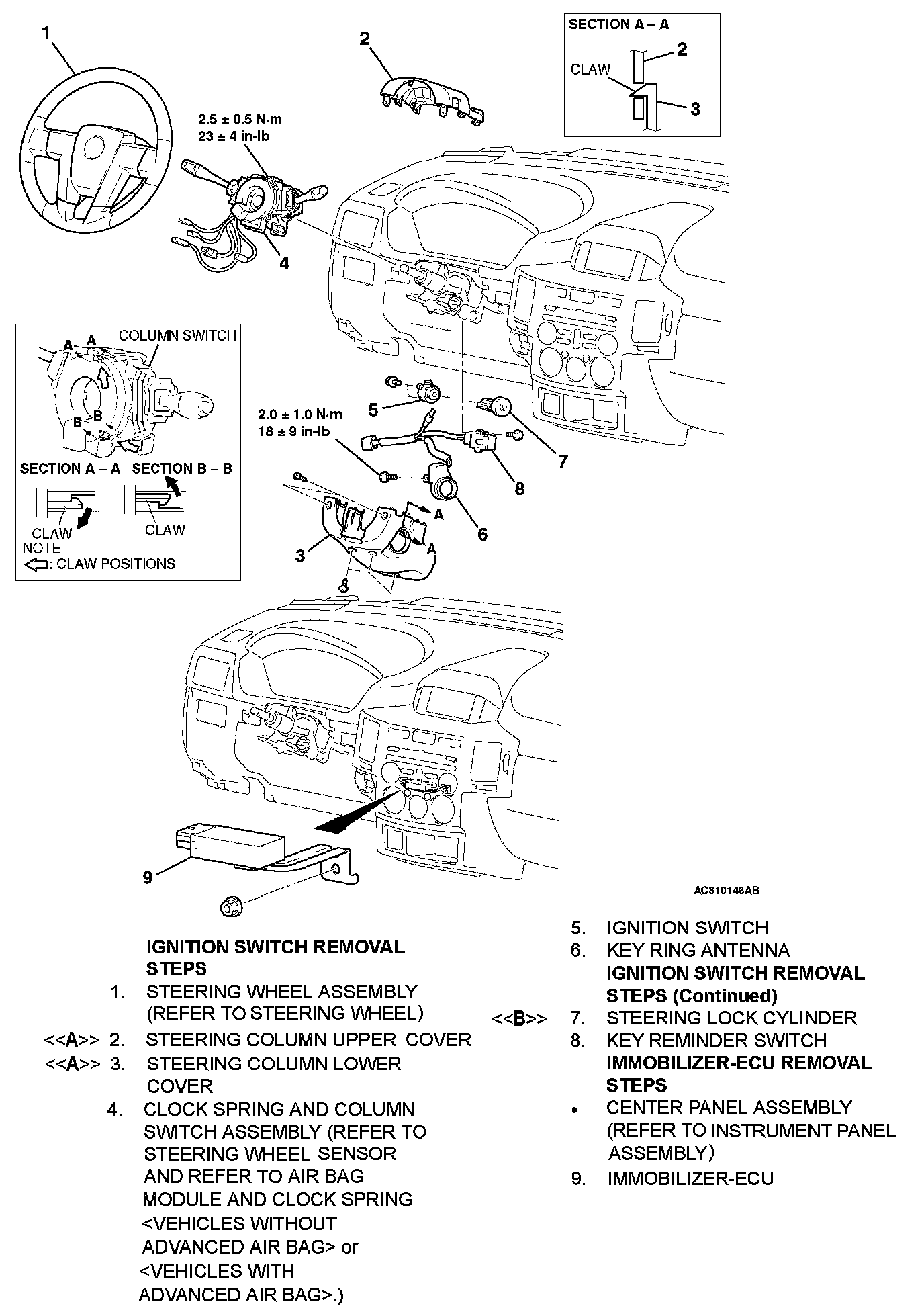 IGNITION SWITCHRemoval Steps 1-9: