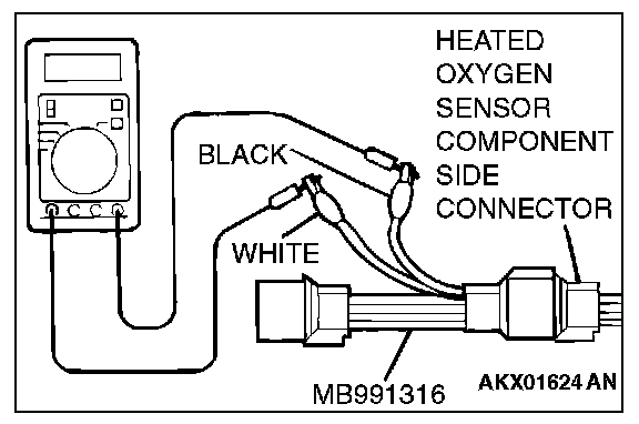 1. Disconnect the heated oxygen sensor connector and connect special tool MB991316 to the connector on the heated oxygen sensor side.
