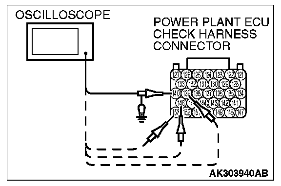 3. Connect the oscilloscope to check harness terminal No. 103. (Check the crankshaft position sensor signal wave pattern.)