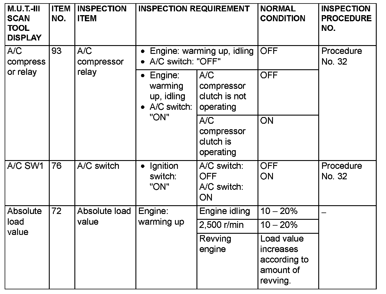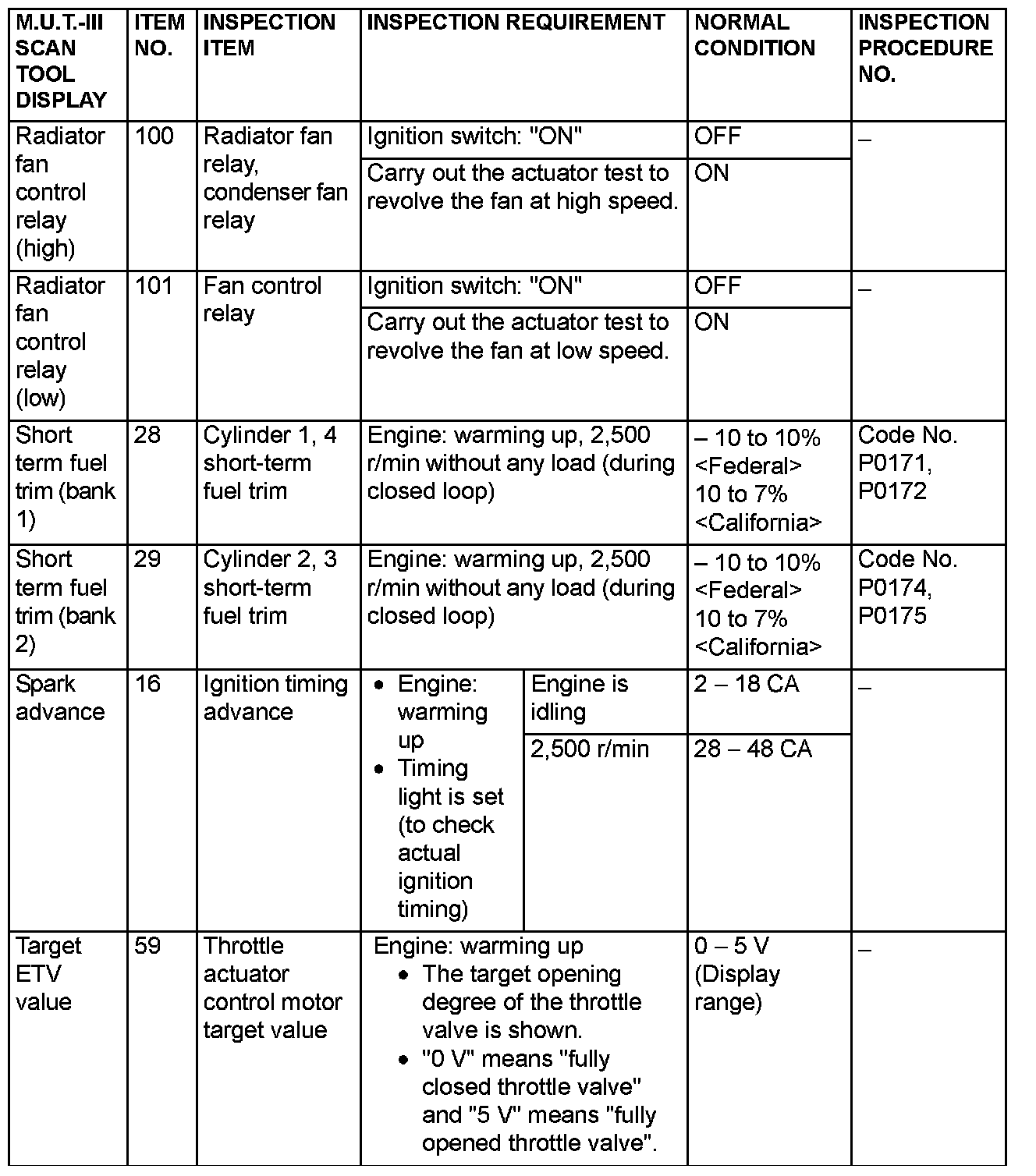 Data List Reference Table & Normal Scan Data Values