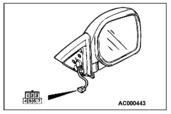 For vehicles with heated door mirrors, check that there is continuity between terminals (3) and (7).
