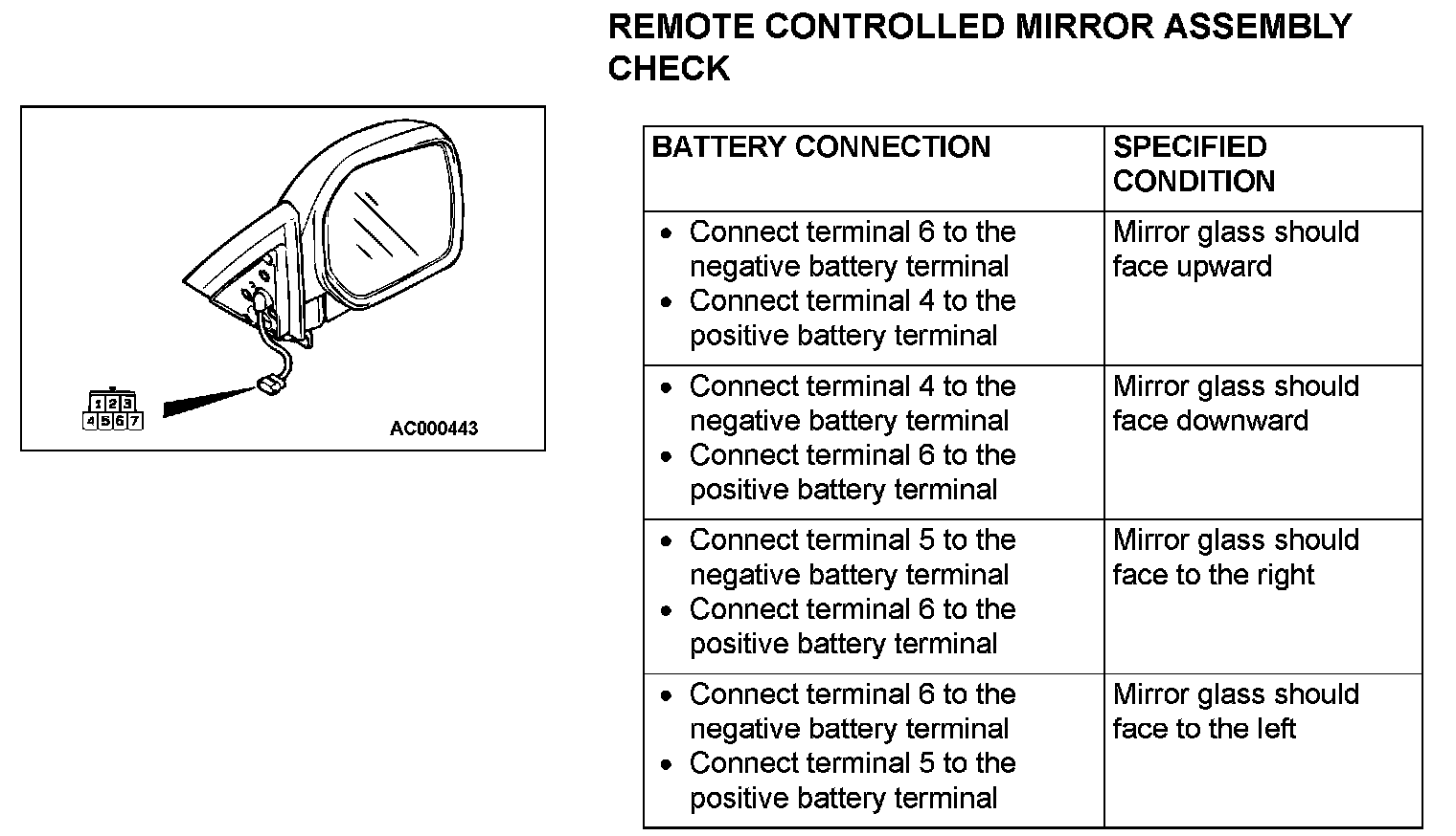 REMOTE CONTROLLED MIRROR ASSEMBLY CHECK