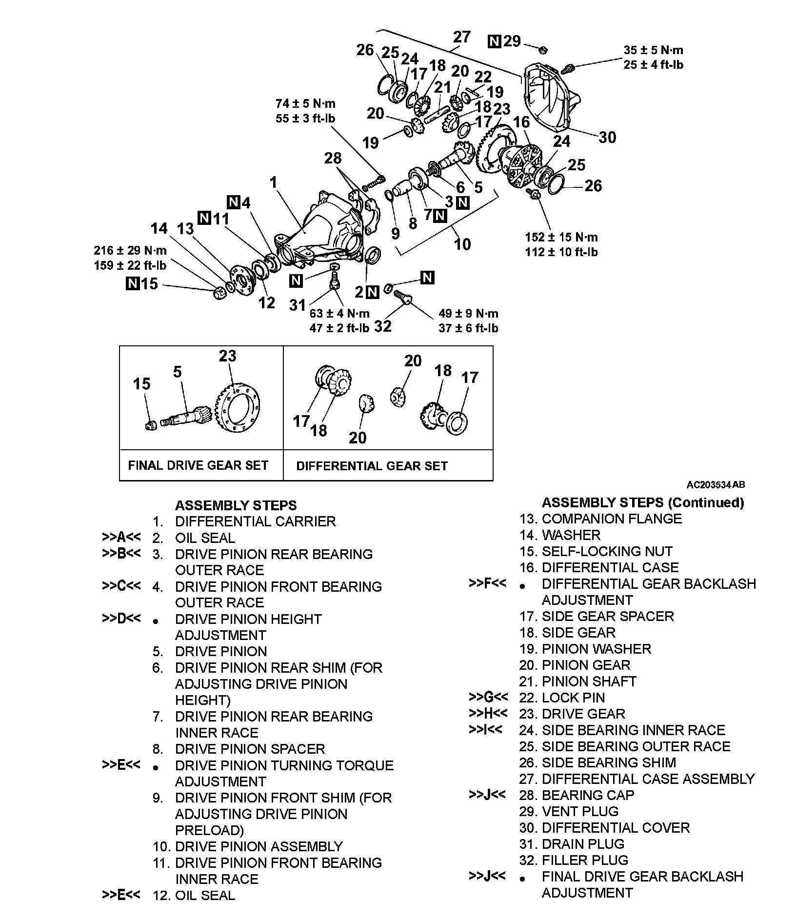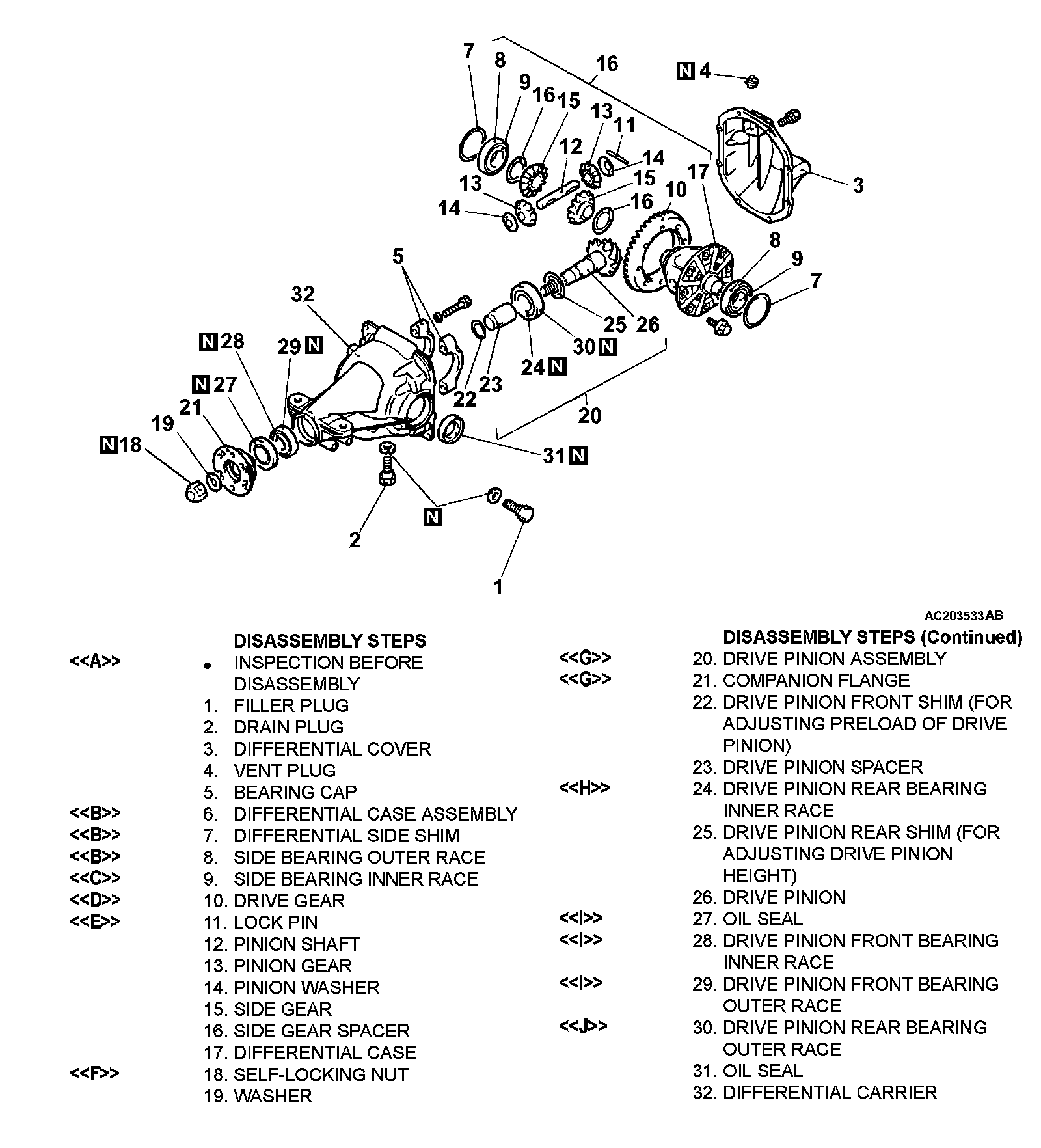 DIFFERENTIAL CARRIER ASSEMBLY DISASSEMBLY W/ RELATED COMPONENTS