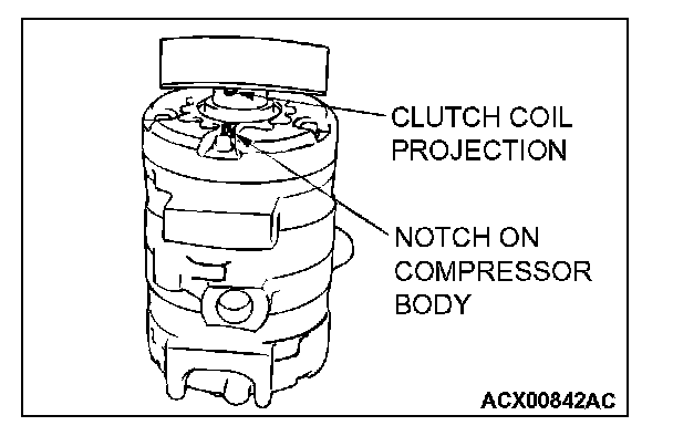 Install the clutch coil to the compressor, mating the compressor body slot to the clutch coil projection.