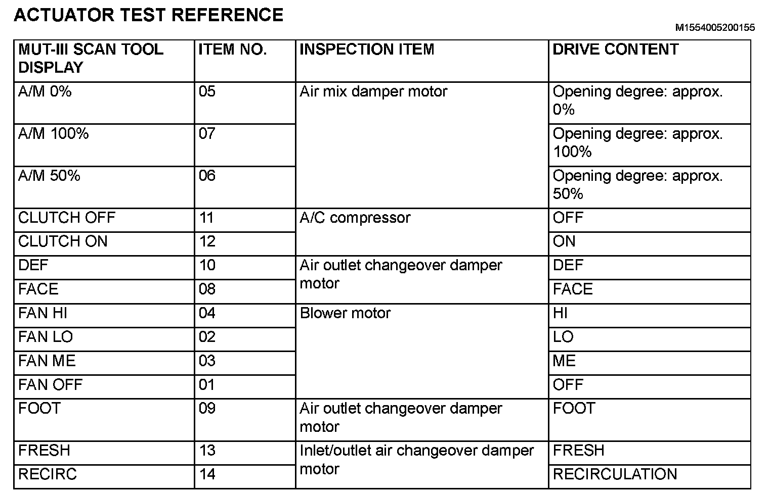 Actuator Test Reference: