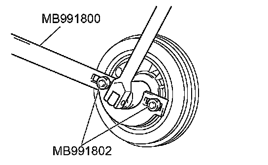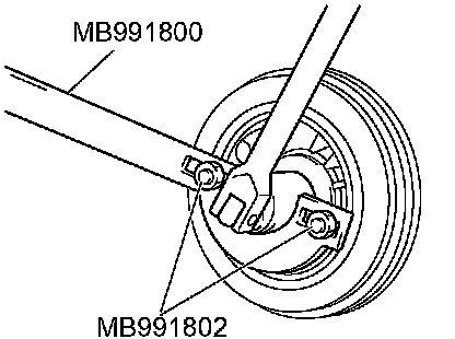 Use special tools MB991800 and MB991802 to remove the crankshaft pulley from the crankshaft.
