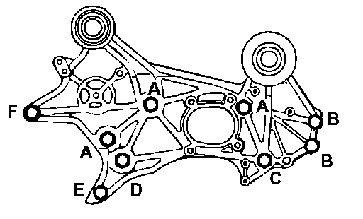 Install the bolts to the shown positions, and tighten them to the specified torque.