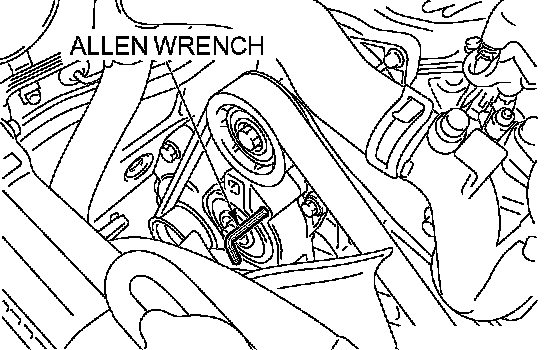 1. Install the drive belt auto tensioner with the Allen wrench inserted.