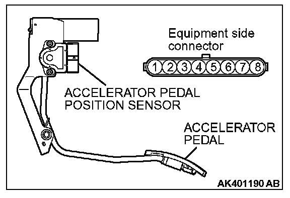 ACCELERATOR PEDAL POSITION SENSOR CHECK1. Disconnect the accelerator pedal position sensor connector.