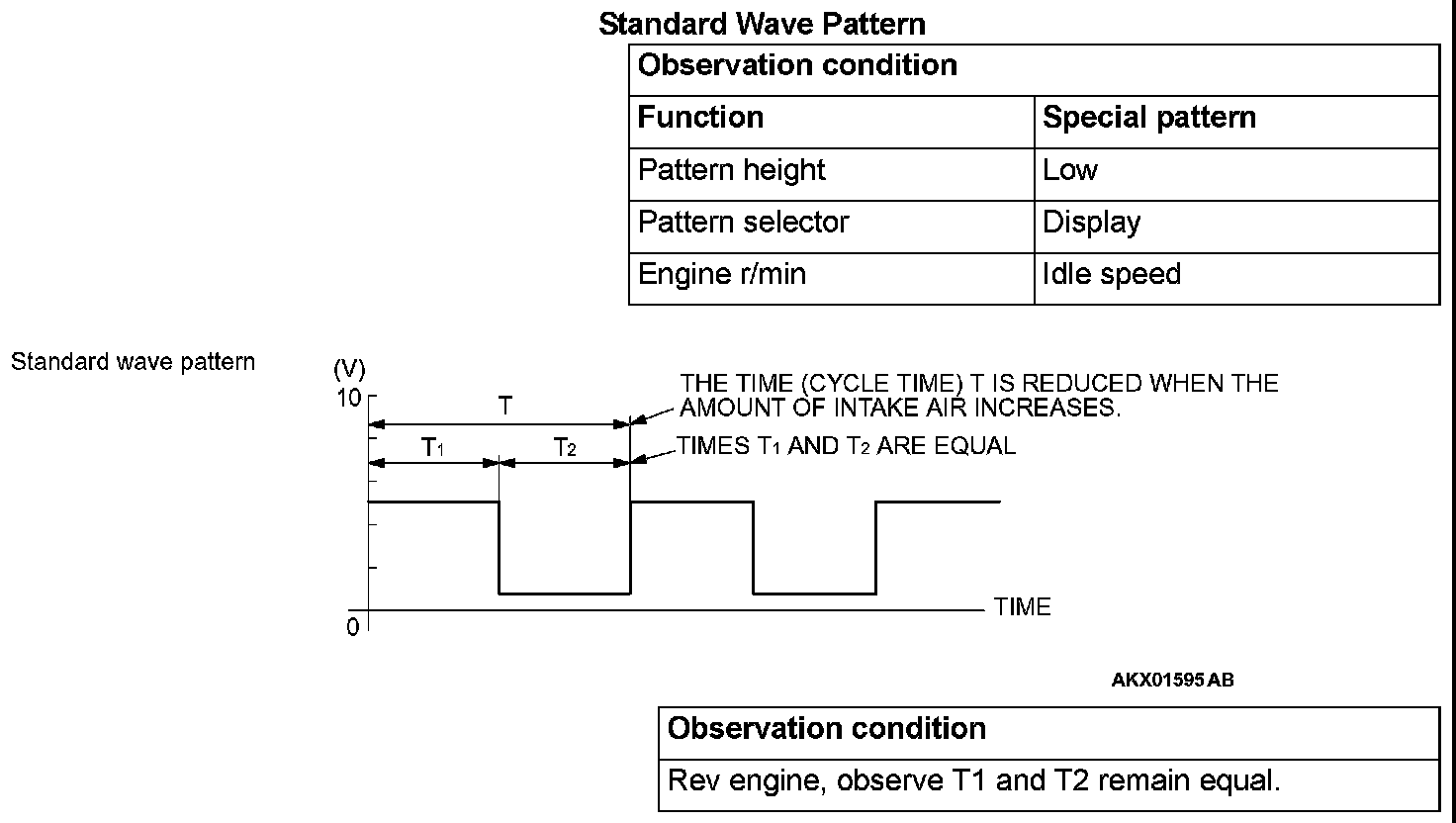 1. Check that cycle time T becomes shorter and the frequency increases when the engine speed is increased.
