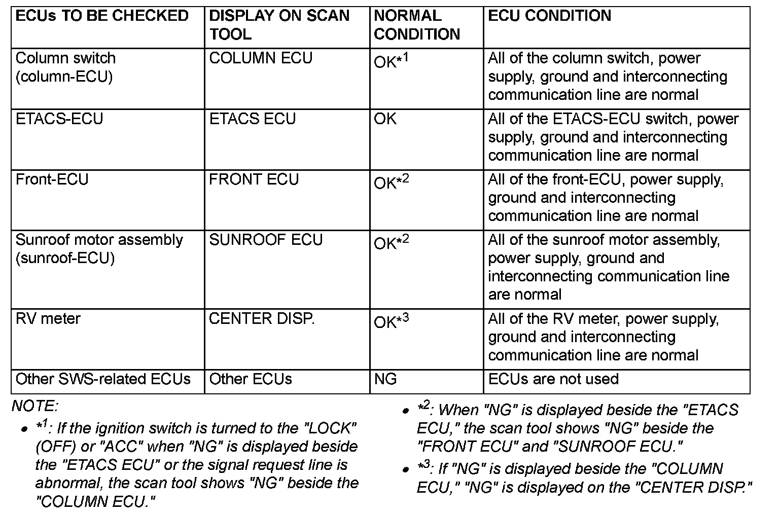 2. The following ECUs can be checked by using the scan tool and the SWS monitor kit.