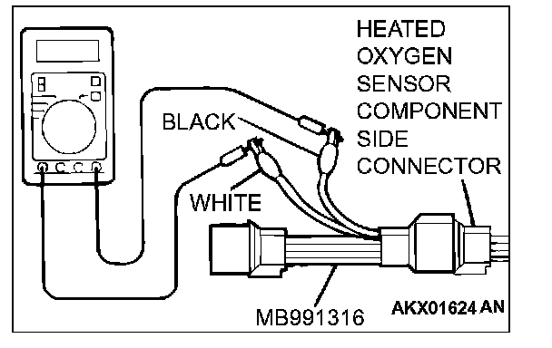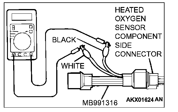 1. Disconnect the heated oxygen sensor connector and connect special tool MB991316 to the connector on the heated oxygen sensor side.