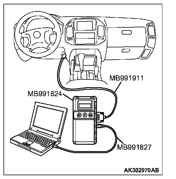 CAUTION: To prevent damage to scan tool MB991958, always turn the ignition switch to the "LOCK" (OFF) position before connecting or disconnecting scan tool MB991958.