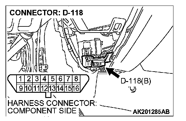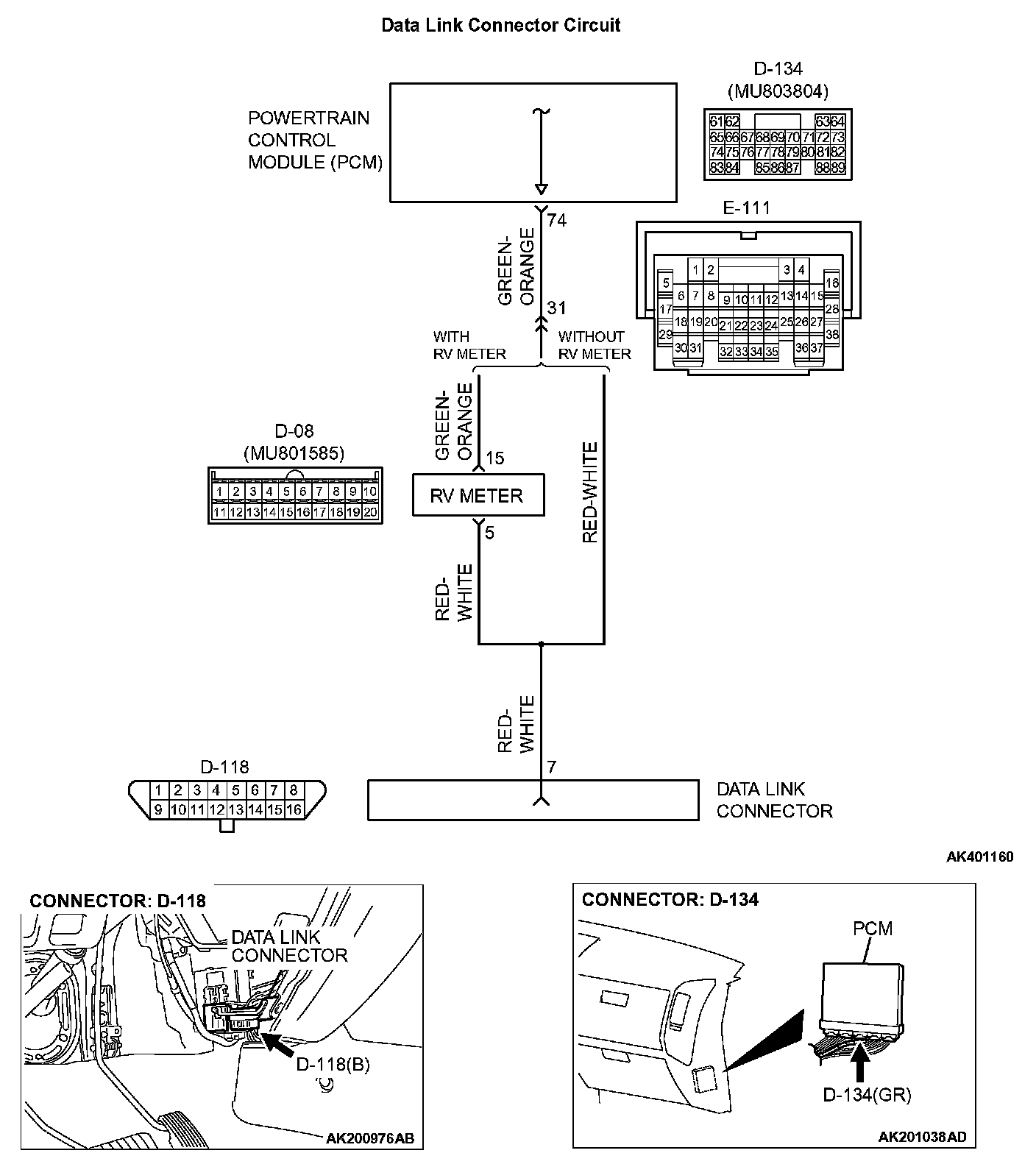 STEP 2. Check for open circuit, short circuit to ground and harness damage between data link connector D-118 (terminal No.7) and PCM connector D-134 (terminal No.74).