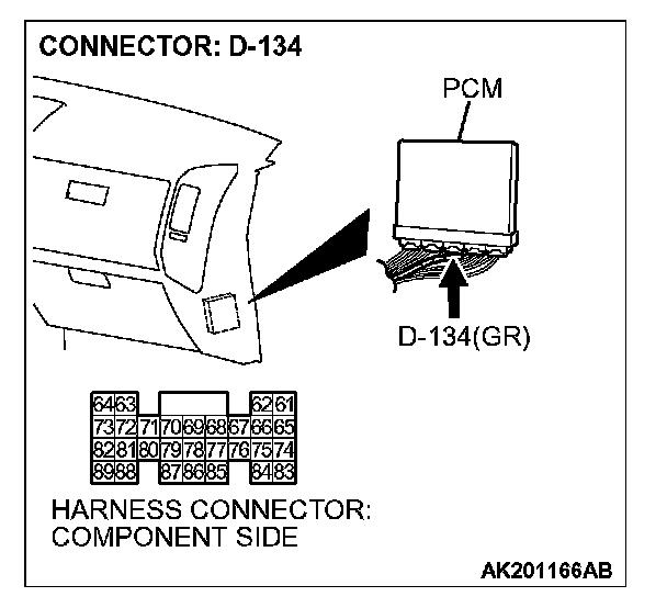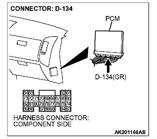 STEP 1. Check harness connector D-134 at PCM for damage.