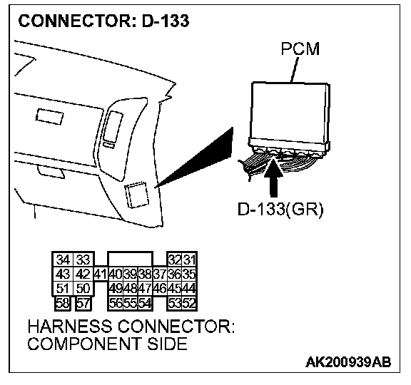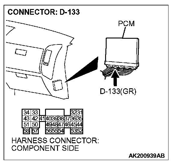 STEP 4. Check connector D-133 at PCM for damage.