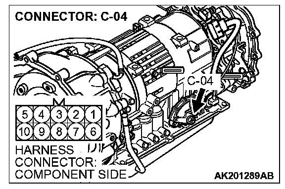 STEP 1. Check connector C-04 at transmission range switch for damage.