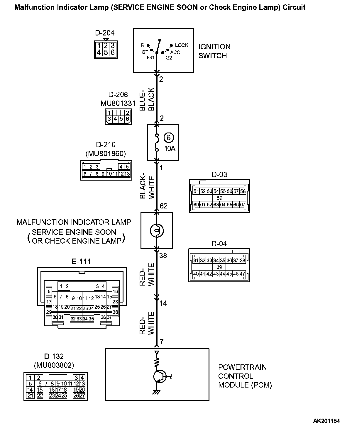 - Short-circuit between the malfunction indicator lamp (SERVICE ENGINE SOON or Check Engine Lamp) and PCM.