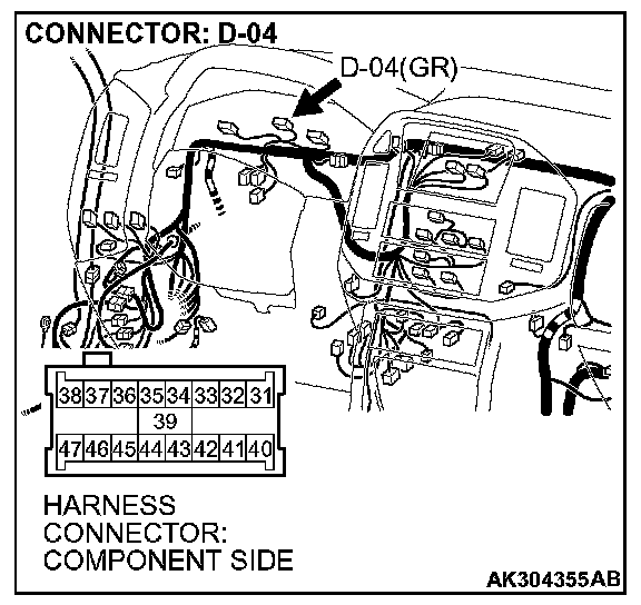 1. Disconnect the connector D-04 and measure at the harness side.