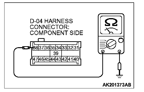 3. Check for the continuity between terminal No.38 and ground.