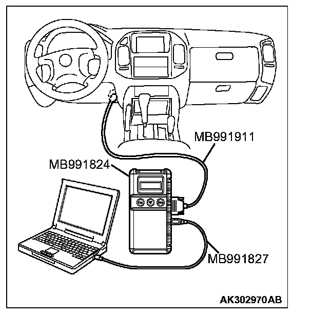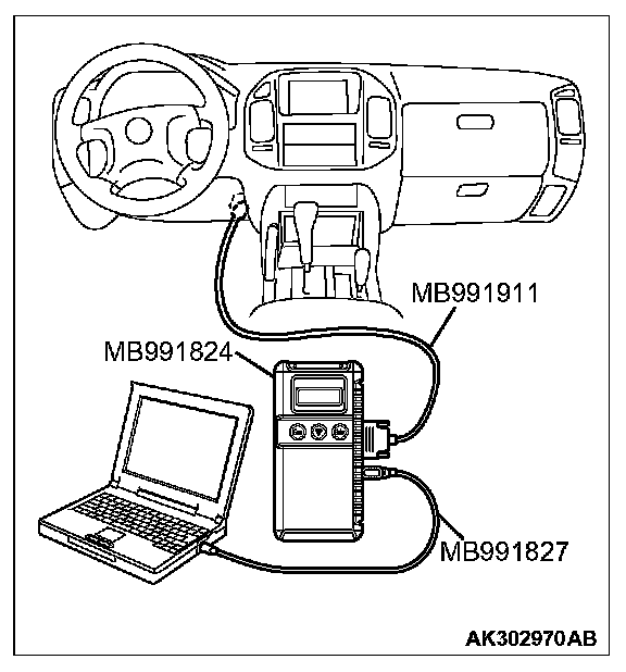 CAUTION: To prevent damage to scan tool MB991958, always turn the ignition switch to the "LOCK" (OFF) position before connecting or disconnecting scan tool MB991958.