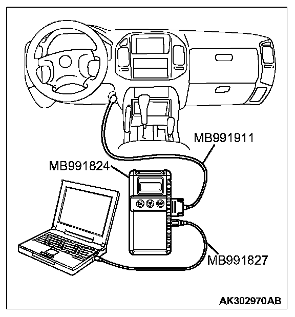 1. Connect scan tool MB991958 to the data link connector.