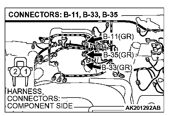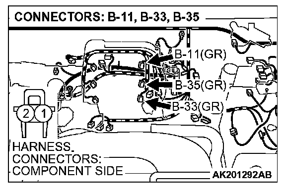 STEP 13. Check harness connectors B-11, B-33, B-35 at left bank injector for damage.