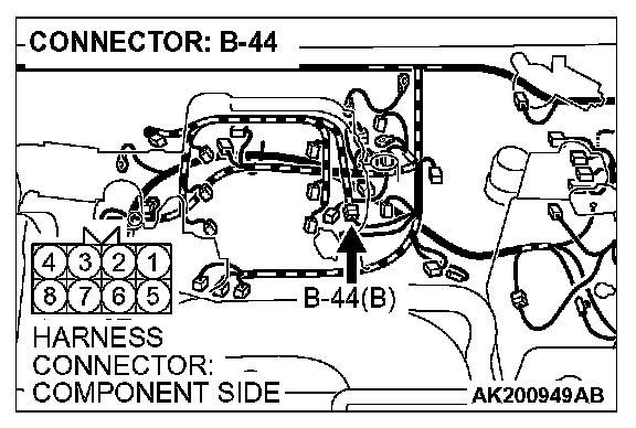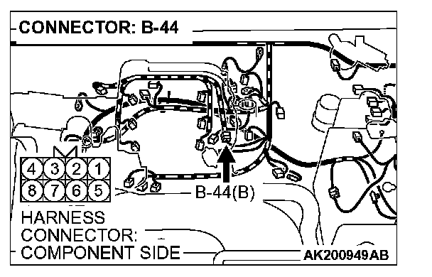 STEP 12. Check harness connector B-44 at intermediate connector for damage.