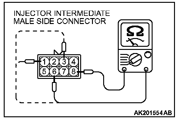 b. Measure the resistance between terminal No.8 and No.1 at No.3 cylinder injector.