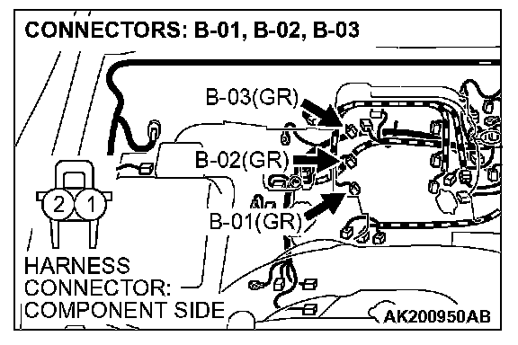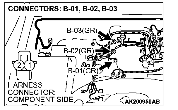 STEP 11. Check harness connectors B-01 or B-02 or B-03 at right bank injector for damage.