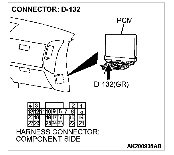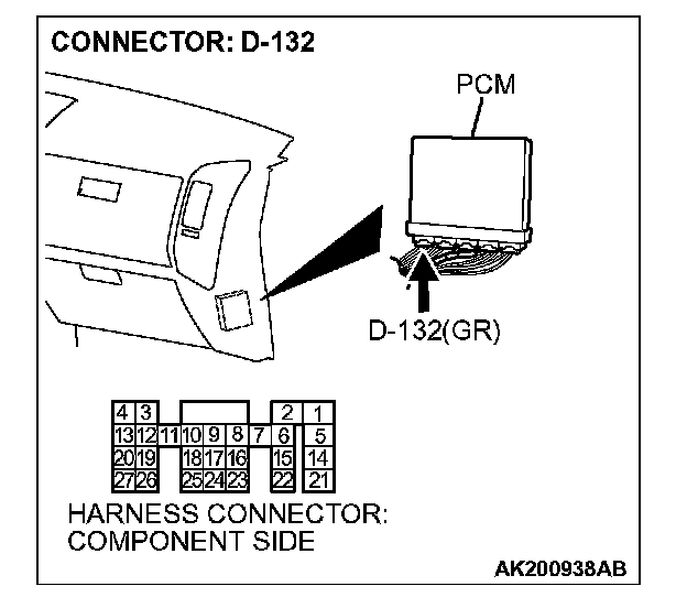 STEP 14. Check harness connector D-132 at PCM for damage.