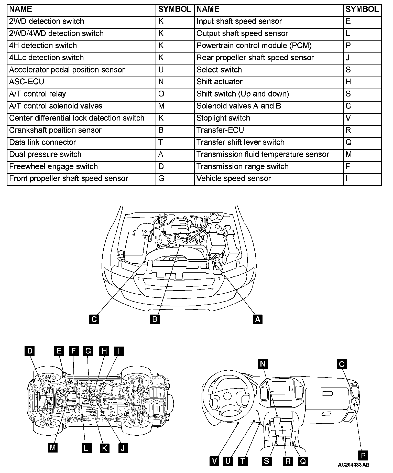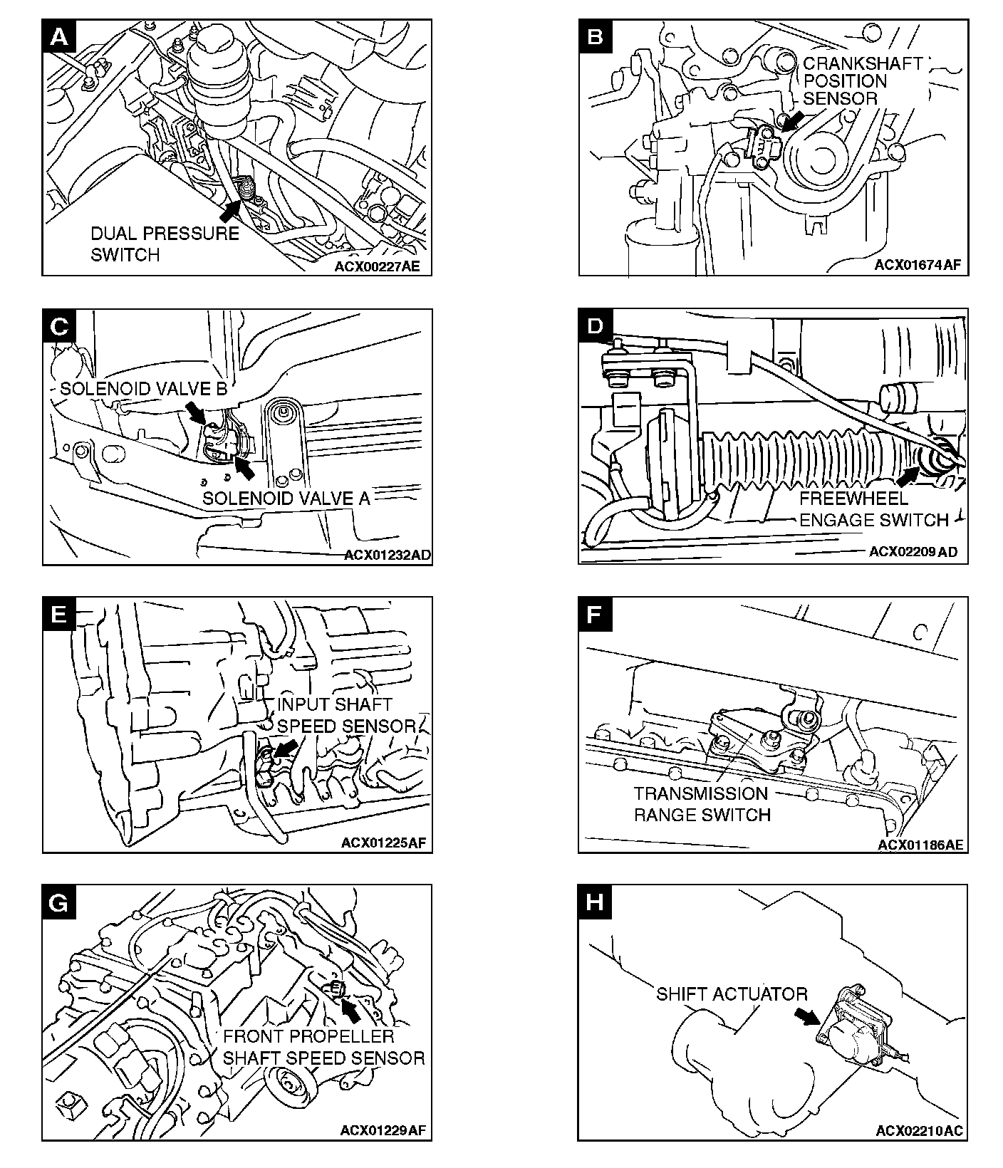 AUTOMATIC TRANSMISSION CONTROL COMPONENT LAYOUT / A-H: