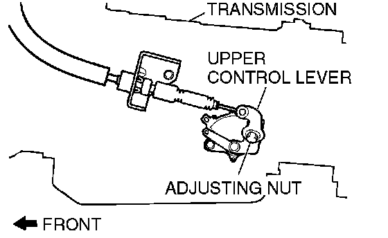 4. Adjust the upper control lever so that there is no slackness or excessive tightness in the transmission control cable, and then tighten the adjusting nut to the specified torque.